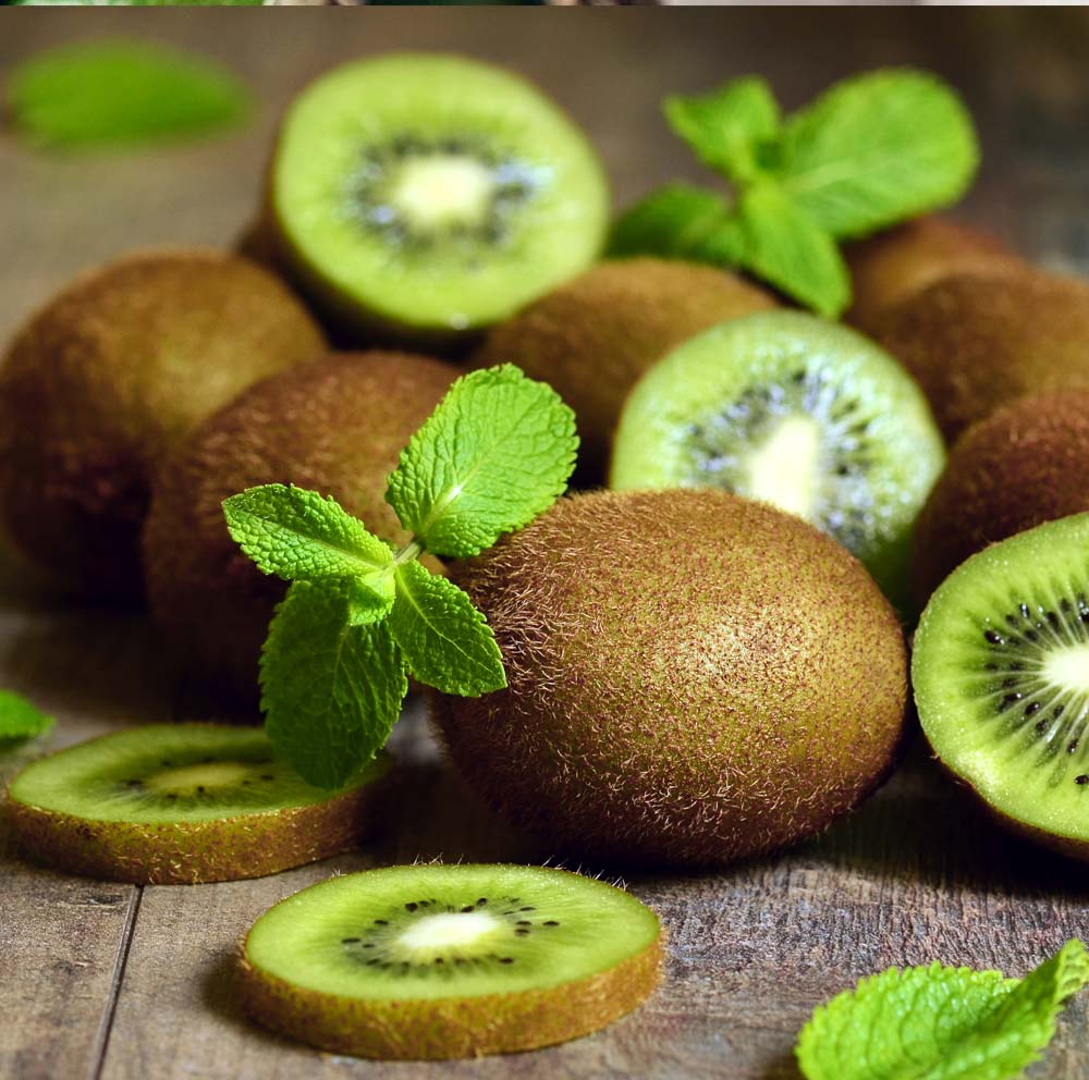 Kiwis are small fruits that pack a lot of flavor and plenty of health benefits. Their green flesh is sweet and tangy. It’s also full of nutrients like vitamin C, vitamin K, vitamin E, folate, and potassium. They also have a lot of antioxidants and are a good source of fiber. Their small black seeds are edible, as is the fuzzy brown peel, though many prefer to peel the kiwi before eating it.