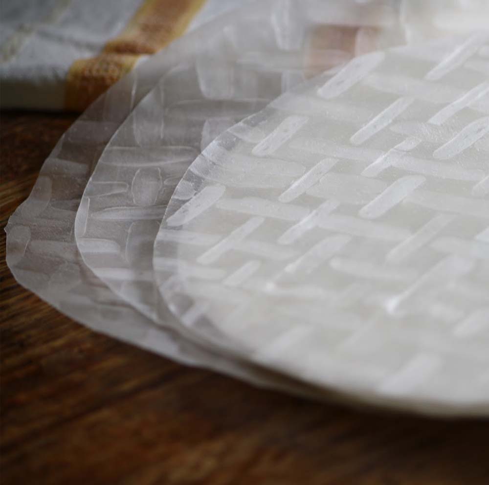 Edible rice paper is used for making fresh summer rolls (salad rolls) or fried spring rolls in Vietnamese cuisine, where the rice paper is called bánh tráng or bánh đa nem. Ingredients of the food rice paper include white rice flour, tapioca flour, salt, and water. The tapioca powder makes the rice paper glutinous and smooth. It is usually sold dried in thin, crisp, translucent round sheets that are wrapped in cellophane. The sheets are individually dipped briefly for a few seconds in warm or cool water to soften, then wrapped around savoury or sweet ingredients.