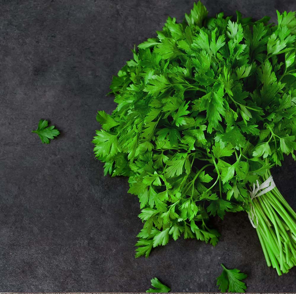 Parsley is a flowering plant native to the Mediterranean. The two most common types are French curly-leaf and Italian flat-leaf.